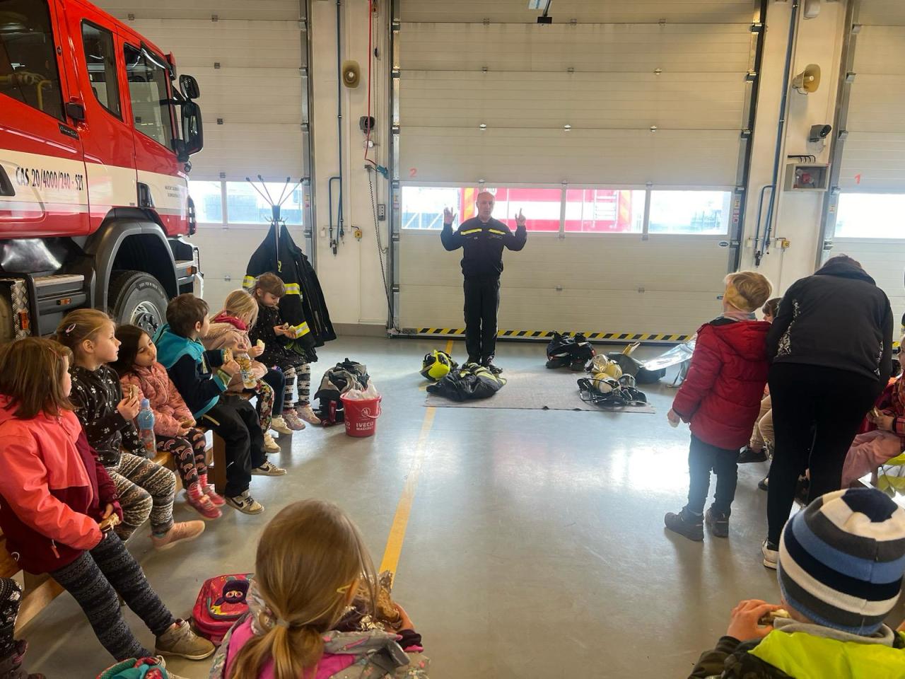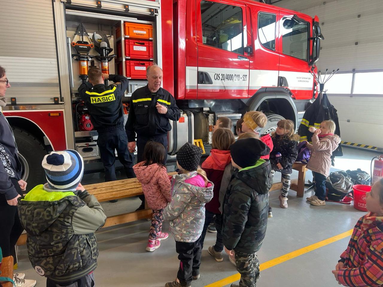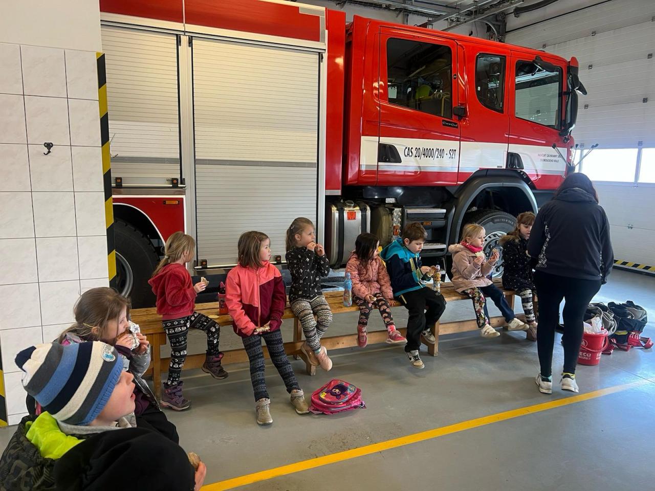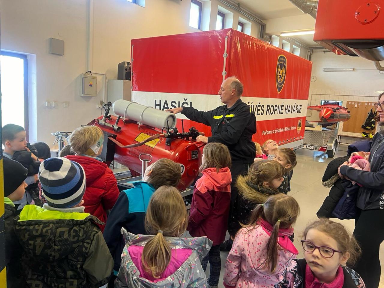 V rámci týdenního plánu „Povolání“ jsme se s dětmi vydali do Uničova na prohlídku tamní hasičské zbojnice. Naše dobrodružství začalo, když jsme byli přivítáni velitelem stanice, který nám věnoval čas a ochotně nám odpovídal na naše dotazy. Poté nás provedl celým areálem a představil nám různé typy hasičských vozidel, speciální oděvy a techniku potřebnou k jejich práci. Vrcholem naší návštěvy bylo, když jsme měli možnost zkusit si na vlastní kůži, jak to je být hasičem. Byli jsme vybaveni hadicemi a pověřeni úkolem stříkat vodu na umělý cíl. Celkově byla naše návštěva hasičské stanice nejen zábavná, ale také poučná.