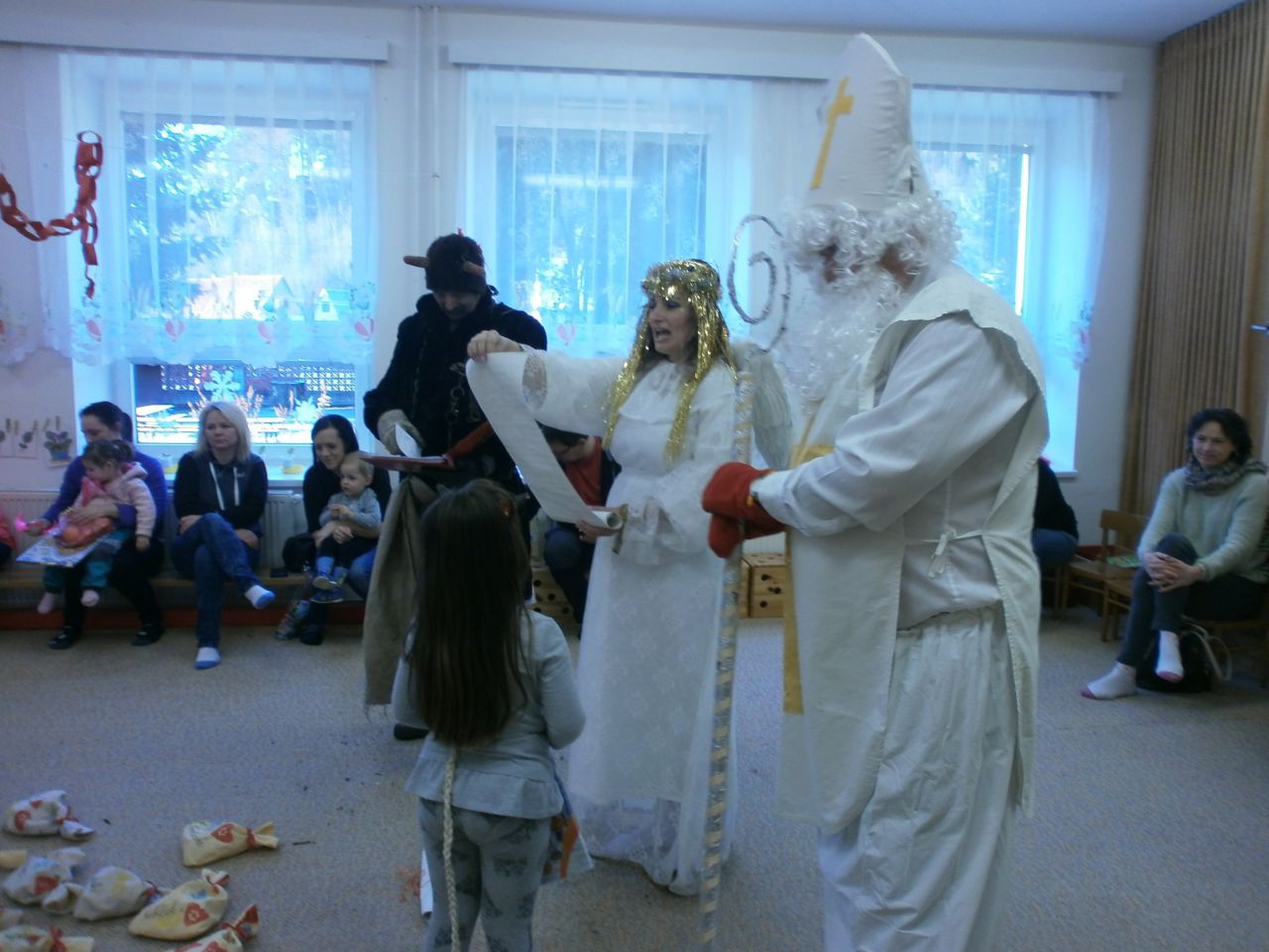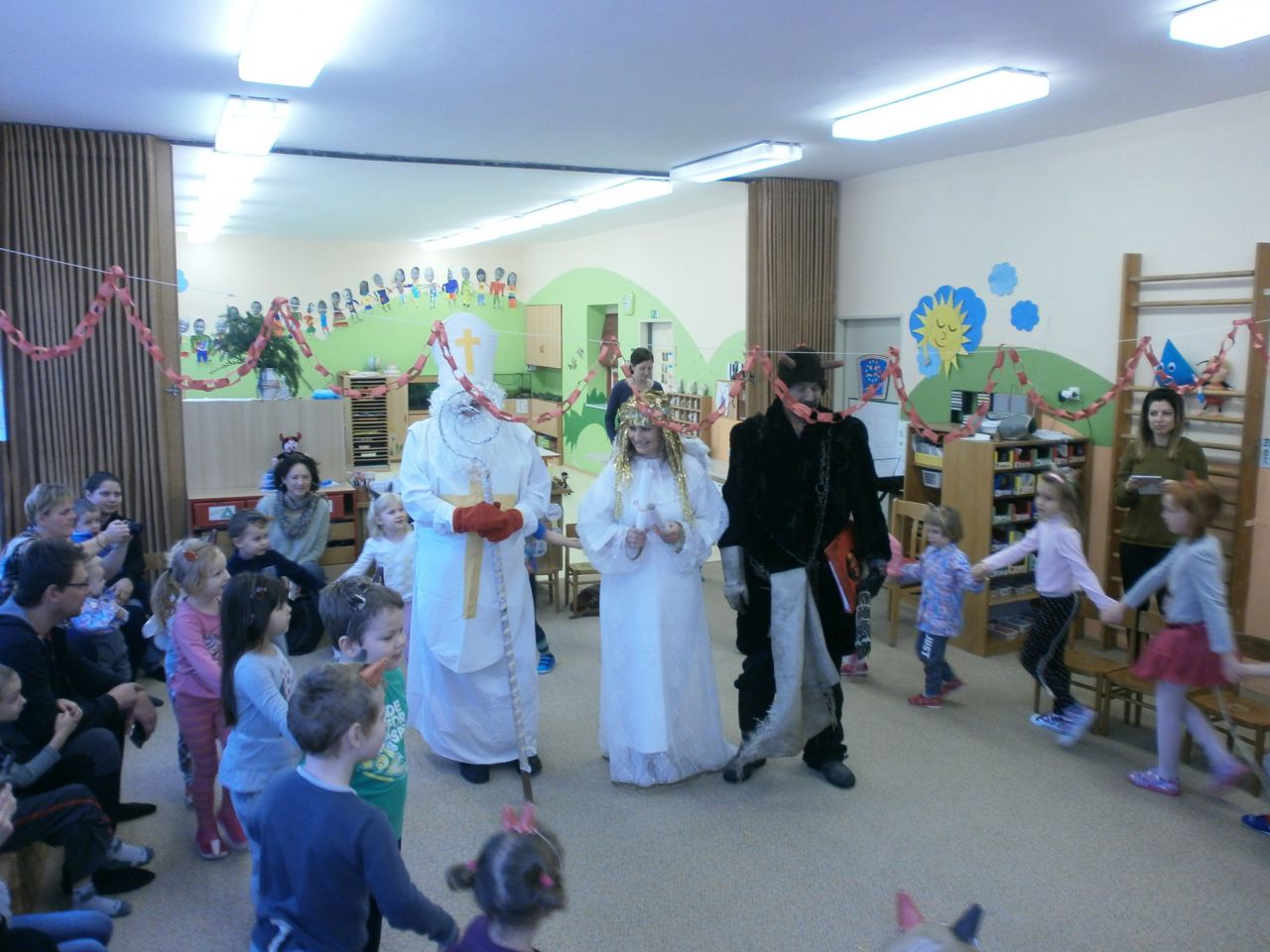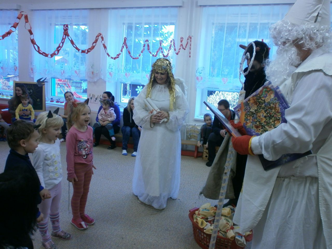 I tentokrát zavítal do mateřské školy na nadílku Mikuláš s andělem a čertem.