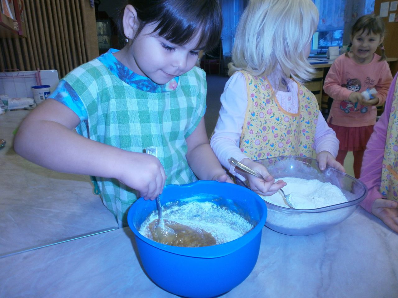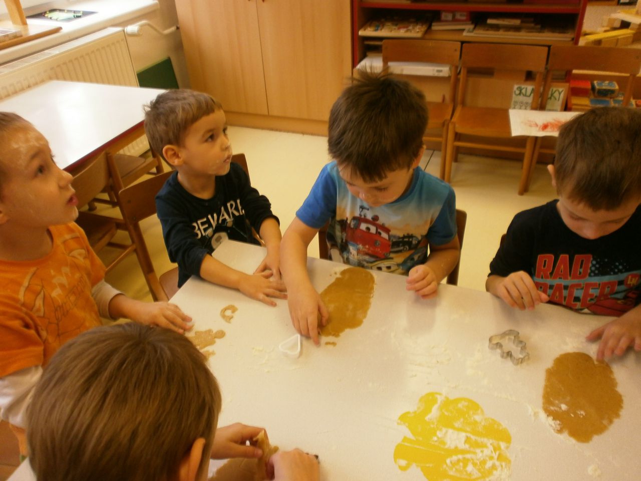 O tom, že děti rády pomáhají, není pochyb. Na pečení perníčků se těšíly. Od rána jsme vážili, míchali, přípravovali těsto, vykrajovali a pekli. Sladký výsledek naší práce se dostavil.