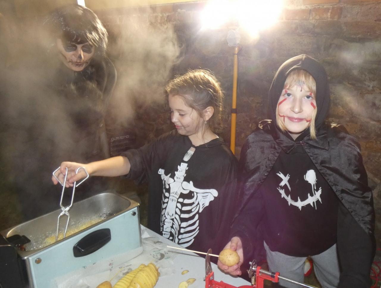 8. a 9. třídy sešli a nachystali různá stanoviště pro ostatní děti. Jistě si dali velkou práci i rodiče, když napekli vynikající občerstvení pro všechny hosty. Obrovským dílem přispěl i pan Pořízek, který uvařil dýňovou polévku a také připravil vynikající bramborové spirály.