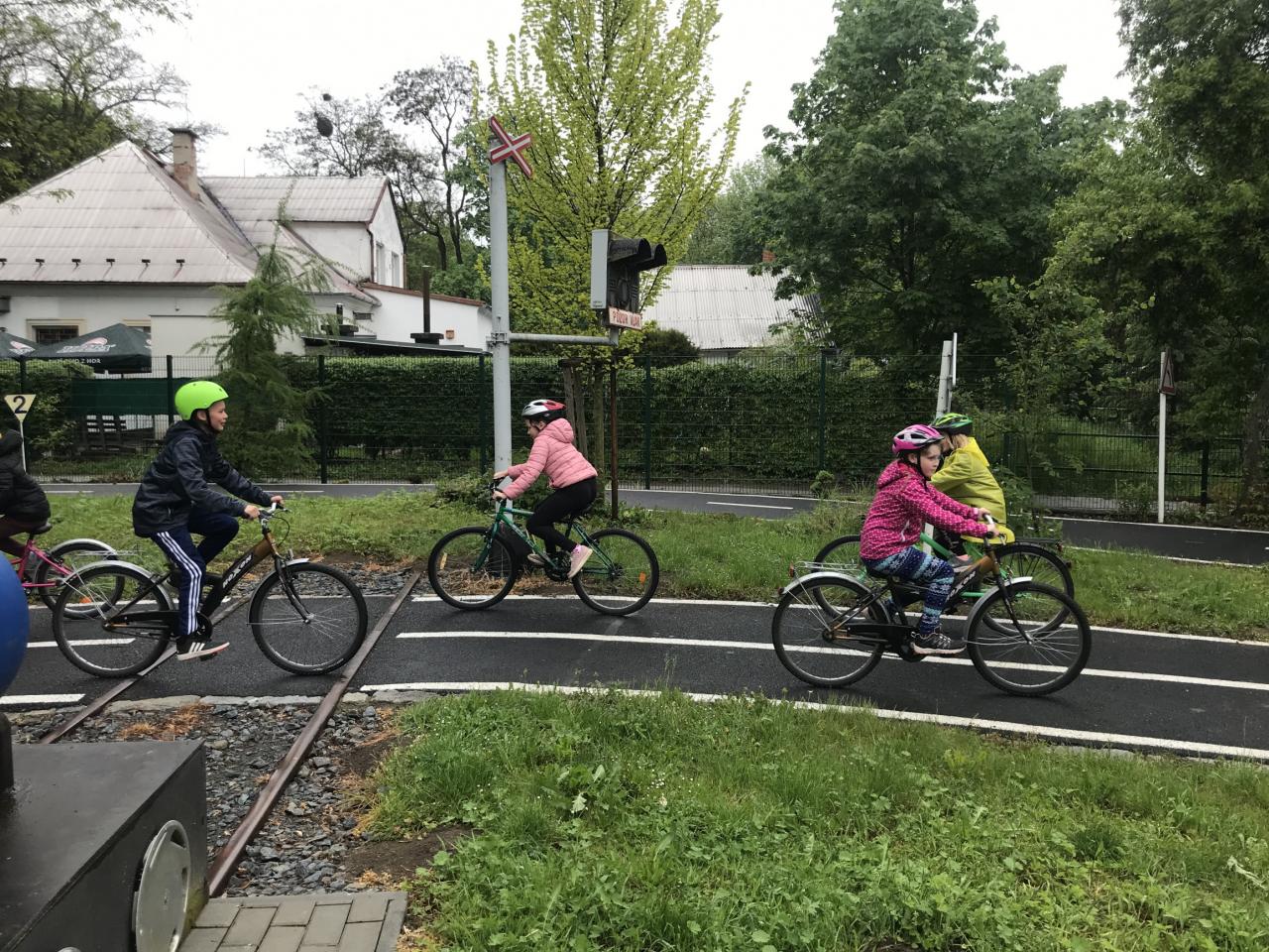 Po provedení instruktorkou po areálu a připomenutí všech dopravních předpisů, si žáci vyzkoušeli praktické jízdy na zapůjčených kolech. Po té se přemístili do učebny a všichni úspěšně napsali test. Počasí nám tentokrát moc nepřálo, ale naštěstí déšt brzy ustal a tak si žáci mohli poslední jízdu užít naplno. Doufejme, že si z tohoto kurzu něco odnesou a budou z nich ukáznění a ohleduplní cyklisté.