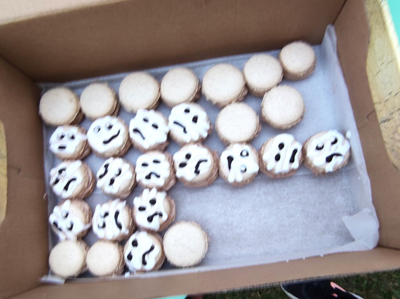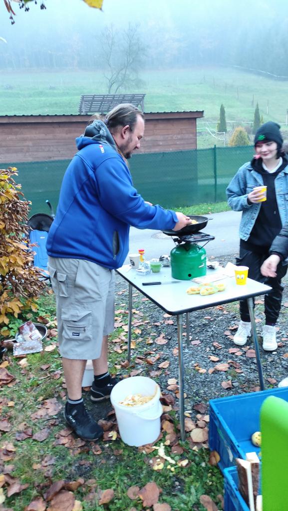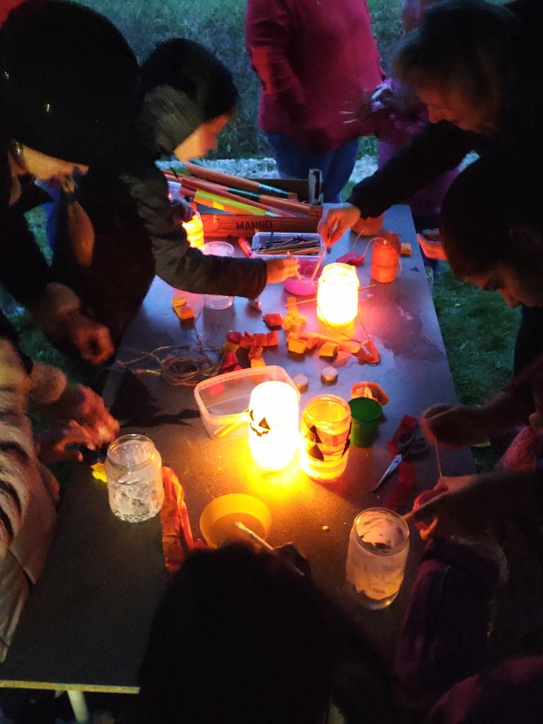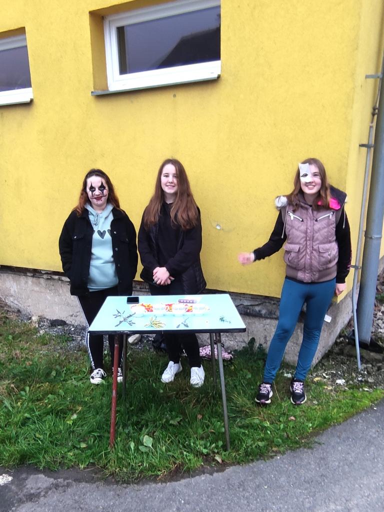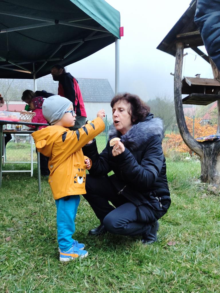 Do příprav i realizace se aktivně zapojili rodiče našich žáků, kteří pomohli nejen s technickými záležitostmi, ale podíleli se i na vlastním programu. V pondělí odpoledne vyrostly na naší školní zahradě dva velké stany, z nichž jeden sloužil pro dětské tvoření, druhý se stal vyhledávaným místem k občerstvení. Z kulinářské dílny pana Radka Pořízka jsme tu mohli ochutnat vynikající dýňovou polévku, párek v rohlíku, lahodný jablečný mošt, k opečení na ohni tu čekaly připravené špekáčky. Ani kávovar nezahálel, dospělým se tu podávala vynikající káva. K té nechyběly ani krásně zdobené zákusky, které napekly maminky našich žáků. A to nebylo všechno! Speciální lahůdkou byly v ohništi pečené brambory, příjemnou změnou chuti pak mohla být jablka v karamelu.