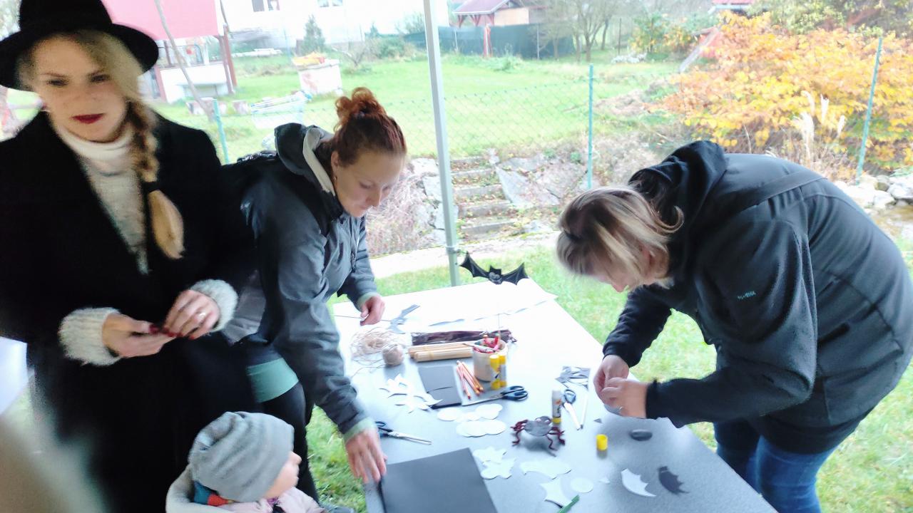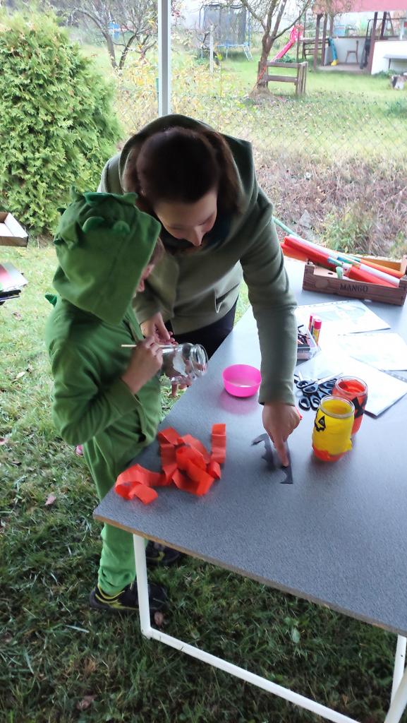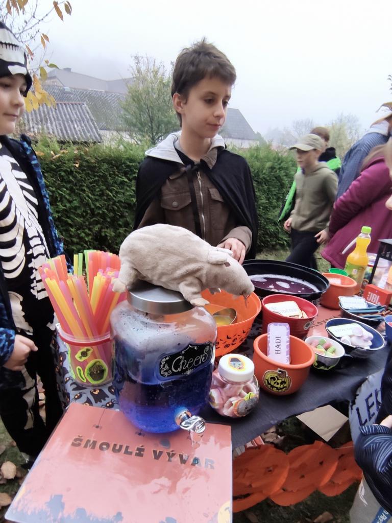 Zahradu brzy zaplnily skupiny dětí v nejstrašidelnějších maskách, výjimkou nebyly ani maminky v krásných kostýmech. Všechny účastníky čekal zajímavý program. Mohli si vyzkoušet, jak dobře zvládají rozpoznávání různých chutí, uvařit si vlastní čarodějnický lektvar či vylovit pavouka z láhve. Samozřejmě nemohlo chybět ani vyřezávání dýní. Po setmění zahradu rozsvítily lucerničky, které si děti mohly vyrobit s pomocí ochotných maminek – paní Zuzany Repáňové a paní Lenky Staňkové. Pozdní odpoledne jsme si všichni užili v příjemné atmosféře a nikomu se domů nechtělo.