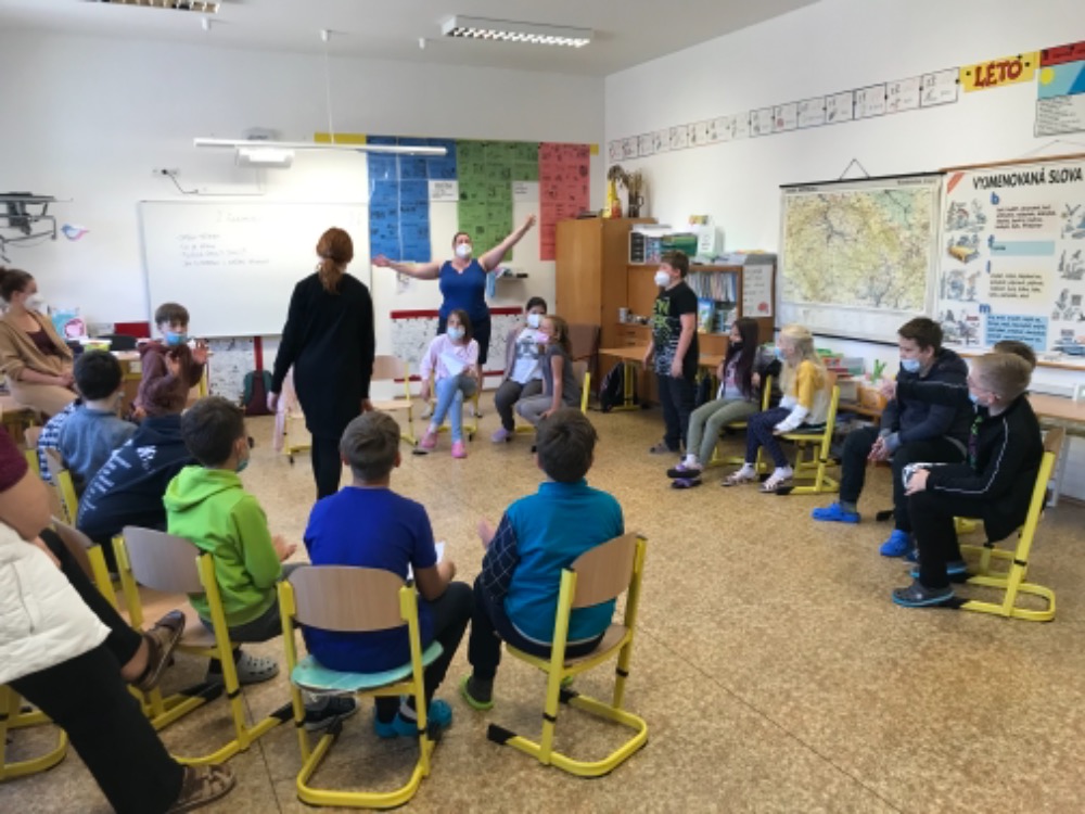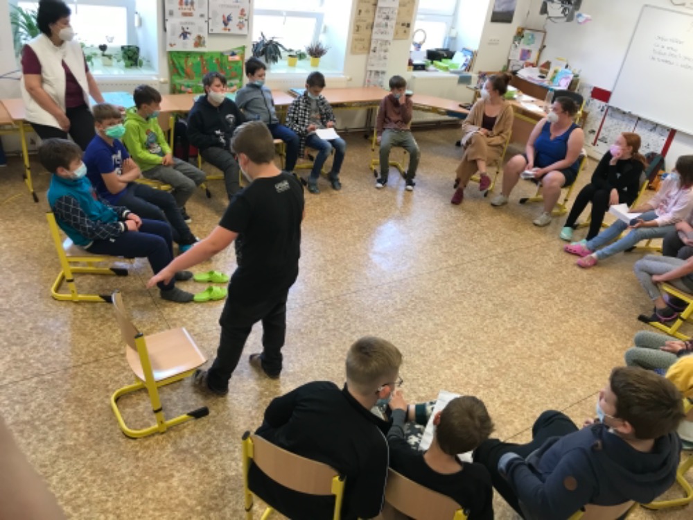 Ve středu 2. června se uskutečnilo na naší škole zajímavé a netradiční seznámení s knihou Petra Stančíka „Mrkev ho vcucla pod zem“. Účastnilo se ho 17 žáků třetího a čtvrtého ročníku. Tento program organizovala akreditovaná instituce MŠMT - sdružení D. V úvodu děti vyslechly krátkou ukázku. Potom si zahrály pohybovou hru „Na mrkve“. Ta byla zaměřená na rozvoj koncentrace a vyzkoušely si takový běžný trénink mrkví, které někoho vcucávají pod zem. Následovalo rozdělení do pracovních skupin. V nich měly za úkol spolupracovat a společně vymýšlet jména příšerám, pokračovat v ději i pomocí zvěda, který jednoduchými otázkami zjišťoval základní lini příběhu jiné skupiny. V závěru ztvárnily pokračování a konec pomocí živého obrazu (fotky), tedy svým postojem, gesty, mimikou. Právě tady hodně záleželo na domluvě a vzájemné spolupráci, což bylo pro některé velmi obtížné a náročné. V samotném závěru proběhlo hodnocení, jak se ve skupině pracovalo, co bylo těžké, snadné, co by šlo příště udělat jinak a proč. Lektorky si postřehy našich dětí zaznamenaly a zároveň poskytly zpětnou vazbu celého programu. No a co vy ostatní? I milovníci počítačových her – nechcete se také nechat vtáhnout třeba „pod zem“, aspoň na chvíli? Kniha aktivně rozvíjí vaši fantazii a zaujme! Je totiž trošku netradiční – má hned tři konce a za každou kapitolou hádanku, tematicky navazující na děj. Za správné vyluštění sbíráte body, které vyměníte za jeden z konců. Tak třeba pro některé čtenáře vhodný tip na nadcházející prázdniny.