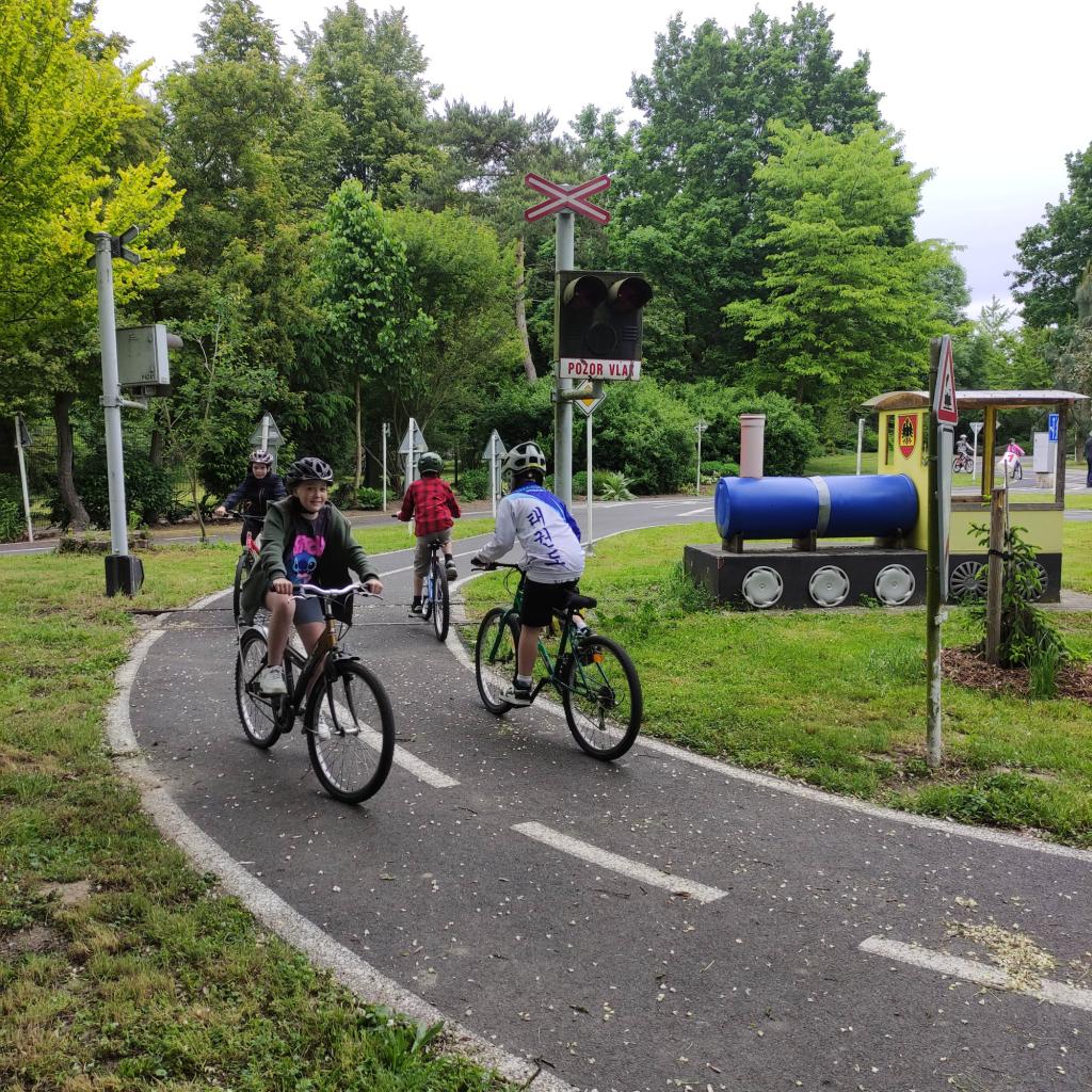 V pátek 30. května ráno vyjeli žáci 4. a 5. třídy z Oskavy na dopravní hřiště v Uničově. V krásném parkovém prostředí si procvičili nejen samotnou jízdu na kole, ale hlavně také průjezd křižovatkami, jízdu na kruhovém objezdu, přednost v jízdě, správný způsob odbočování vpravo i vlevo ad. S paní asistentkou Vlaďkou jsme zahrály chodce na přechodech a semaforech a na hřišti nechyběl ani přejezd přes koleje s blikajícím signalizačním zařízením, který byl asi nejoblíbenějším místem všech našich cyklistů. Až na trošku pošmourné počasí se akce velmi vydařila a všem žákům se nakonec podařilo zvládnout nejen jízdy, ale i testy, a získat tak průkazku cyklisty.