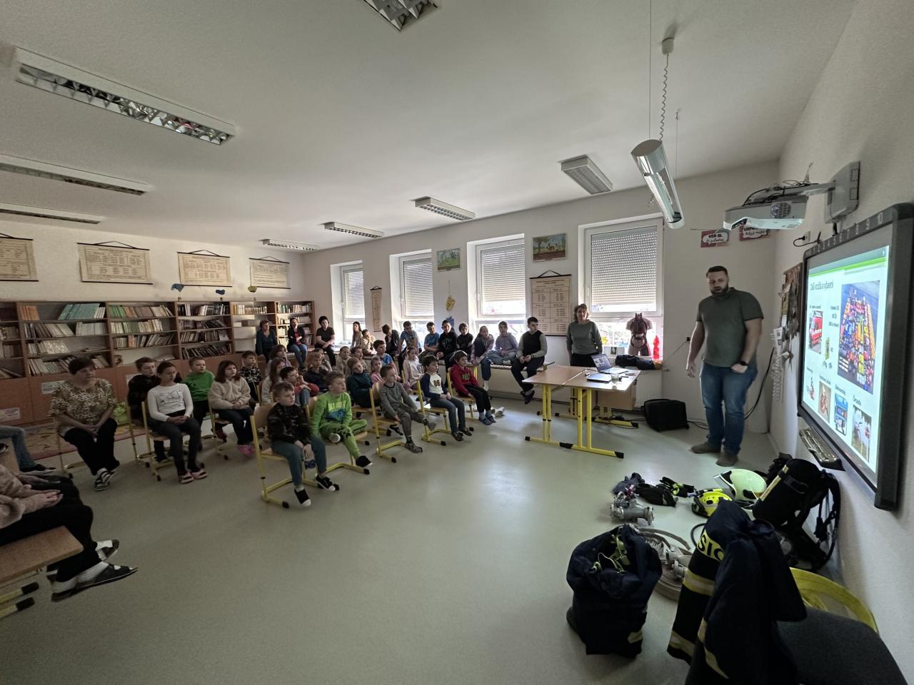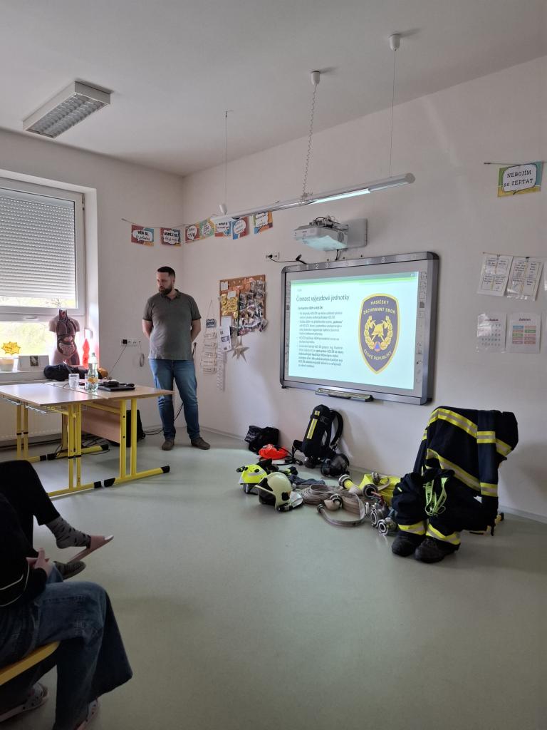 Během poutavé přednášky se žáci dozvěděli, jak probíhá hasičský zásah, jaké vybavení hasiči používají a jak funguje jejich organizace. Přednášející také vysvětlil, jak se mohou lidé stát dobrovolnými hasiči a jak významná je jejich role v ochraně obyvatel i majetku.Neméně důležitou součástí setkání byla i prevence požárů. Žáci se naučili základní pravidla požární bezpečnosti, jak předcházet vzniku požáru v domácnosti a jak správně reagovat v případě ohrožení. Přednáška byla doplněna zajímavými příběhy i videi z praxe.Žáci i učitelé odcházeli nejen s novými znalostmi, ale také s respektem k práci hasičů.
