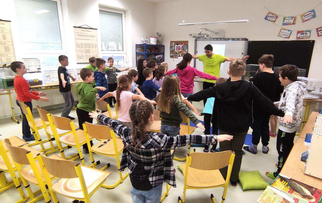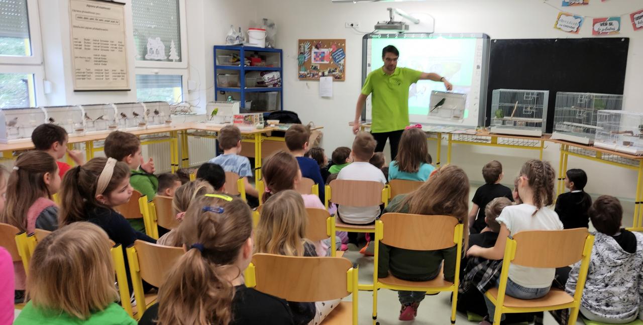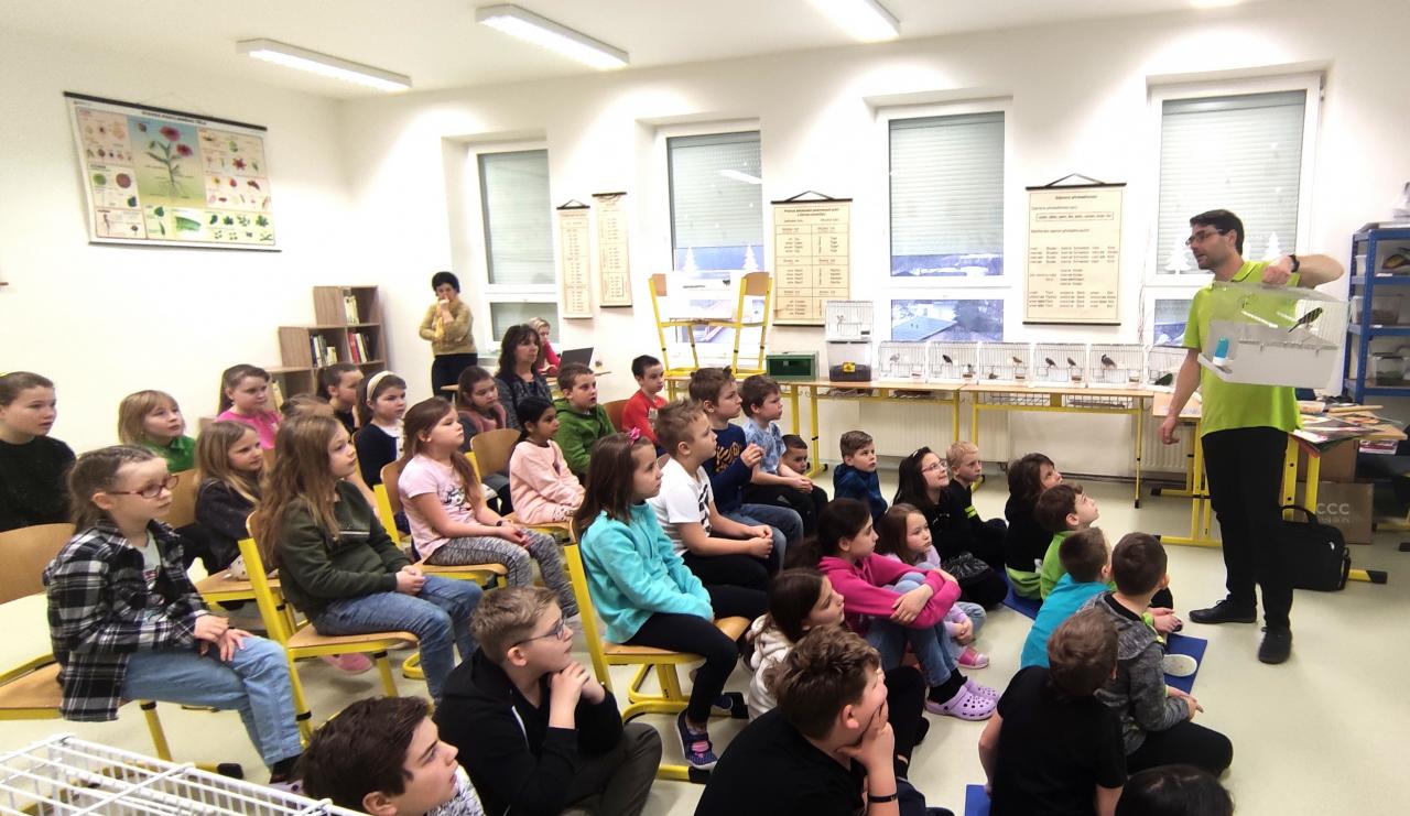 Velmi poutavou formou dětem vypravoval o životě papoušků i jiných vzácných a ohrožených druhů ptáků ve volné přírodě, o jejich záchraně a chovatelství. Svým výkladem doprovázeným zpěvem přivezených ptačích přátel, poutavými videi a možností mít v rukou živou hrdličku, zaujal nejen žáky, ale i pedagogy natolik, že se někteří rozhodli začít s chovem nějakého menšího papouška. Na závěr mohli pozorní posluchači získat ve znalostní soutěži za správné odpovědi drobné odměny.