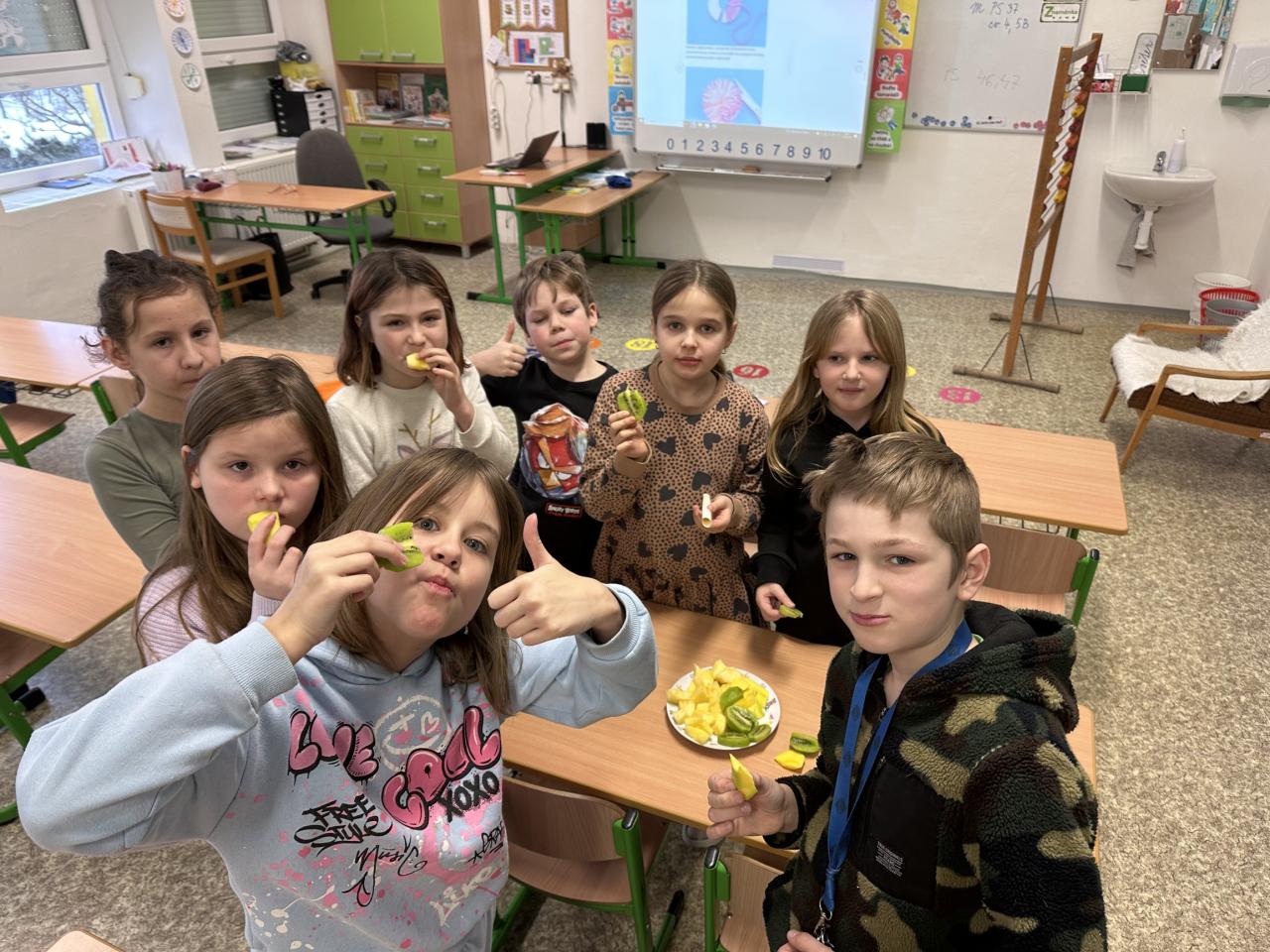 U nás ve škole podporujeme děti ve zdravém životním stylu a v rámci projektu „Ovoce do škol“ jsme v těchto zimních měsících obdrželi na ochutnávku exotické ovoce – ananas, mango a kiwi. Dětem moc chutnalo, každý si vybral to své.