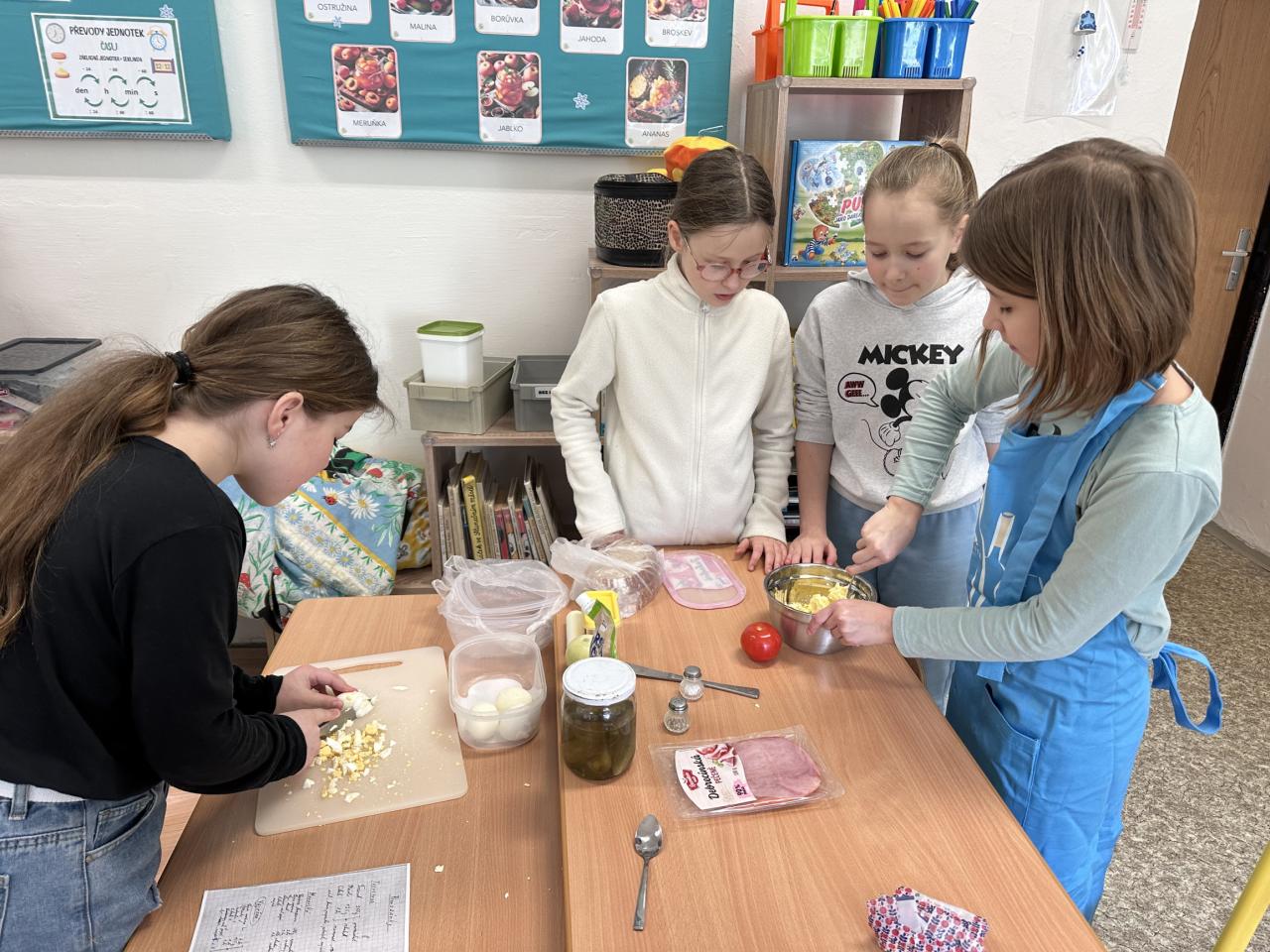 Také v pracovních činnostech (ČSP) se děti učí, jak například připravit chutnou pomazánku a potěšit tak doma třeba rodiče nebo návštěvu svým vlastním kuchařským uměním.