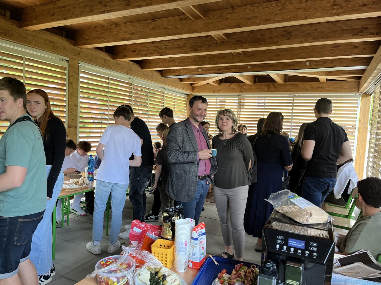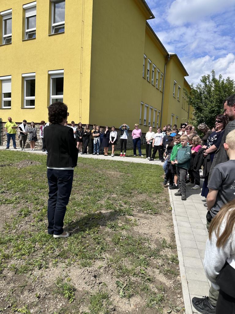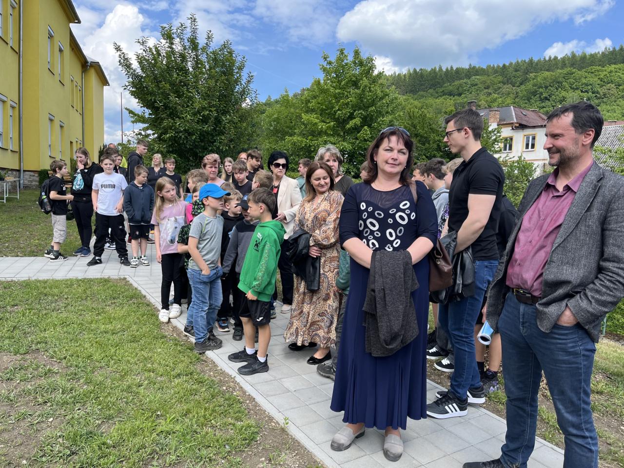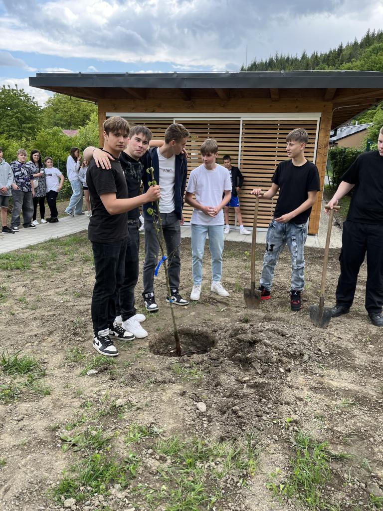 Slavnostní otevření venkovní učebny bylo zároveň ukončením naší práce na projektu. Vedle pana starosty, zastupitelů obce a některých rodičů jsme měli příležitost přivítat i slovenské hosty z partnerské školy. Po zahajovacím projevu Matyáše Navrátila, žáka 9. ročníku, nás čekala prohlídka venkovní učebny a bohaté občerstvení, které připravily pracovnice školní jídelny. Po vysazení dvou stromů česko-slovenského přátelství mohli žáci strávit příjemné odpoledne s plněním zajímavých přírodovědných úkolů.
