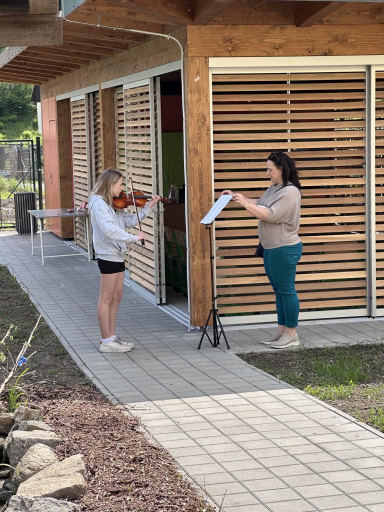 21. květen se stal významným dnem v životě naší školy. Konečně jsme se dočkali dokončení venkovní učebny!