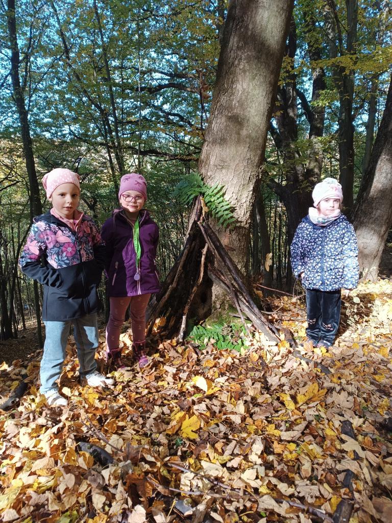 Během vycházky jsme si povídali o tom, proč jsou stromy důležité pro přírodu i pro člověka – poskytují kyslík, domov zvířatům a chrání půdu. Děti absolvovaly také stezku s úkoly a podzimní hledačku, při které pozorovaly barvy listí, hledaly plody stromů, stopy zvířátek, houby a další přírodniny spojené s lesem a podzimní přírodou. Na závěr si z nasbíraných přírodnin postavily domečky pro lesní skřítky, ve kterých se projevila jejich fantazie i šikovnost.