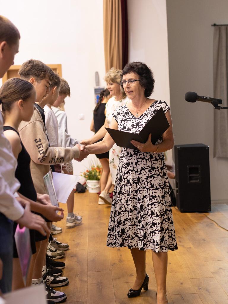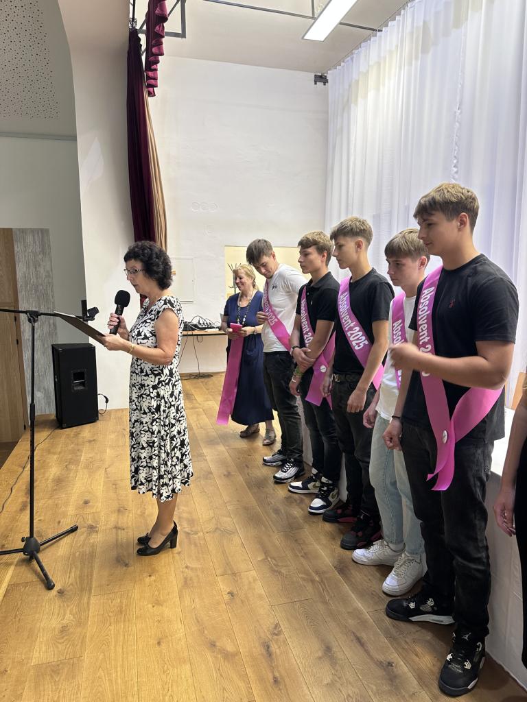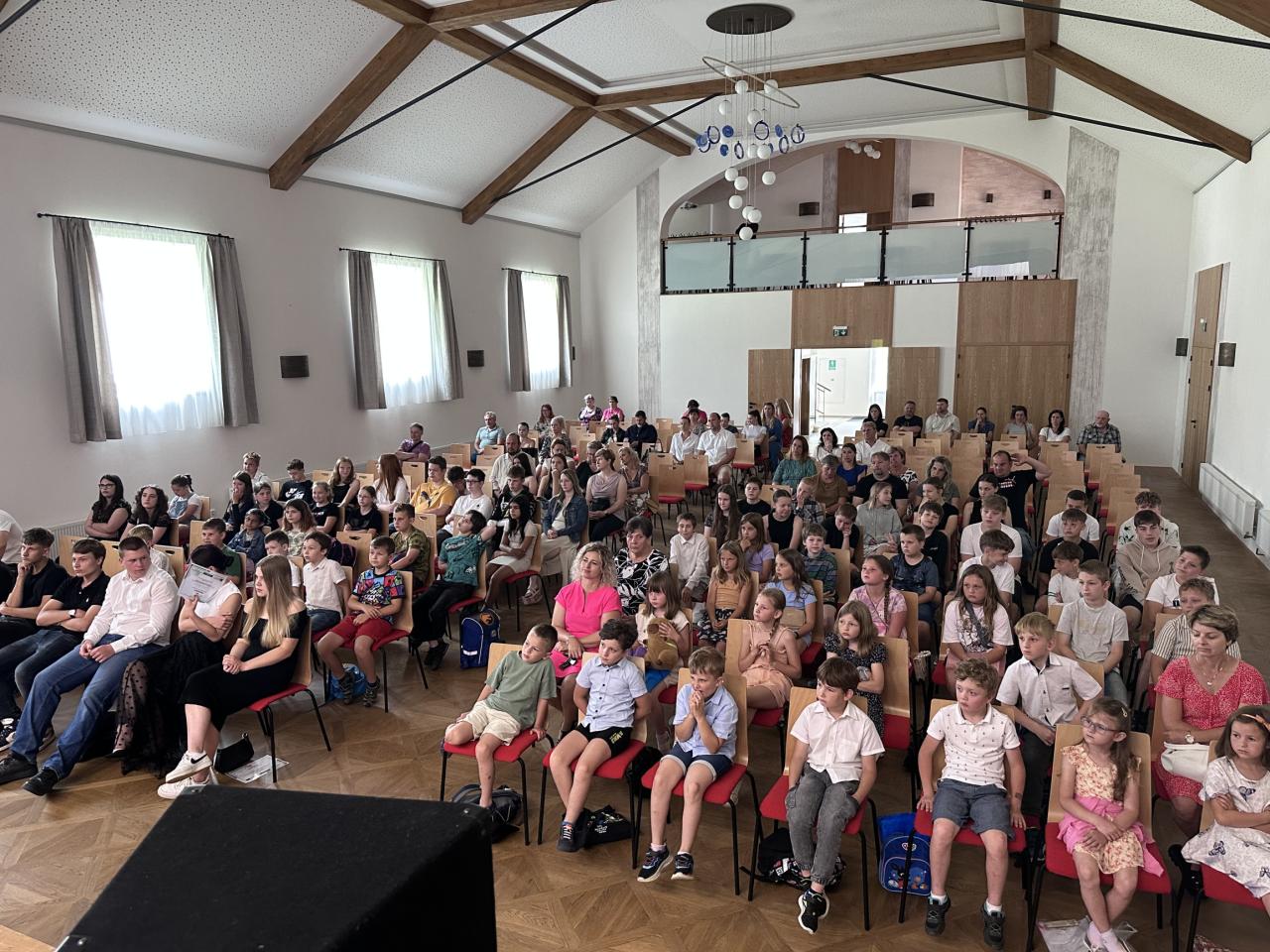 V pátek 27. června 2025 se v kulturním domě konalo závěrečné ukončení školního roku. Ředitelka školy přednesla proslov, ve kterém shrnula celý školní rok – zmínila, co se povedlo, jaké akce proběhly a poděkovala všem za jejich práci. Po proslovu následovalo slavnostní předání šerp žákům deváté třídy.