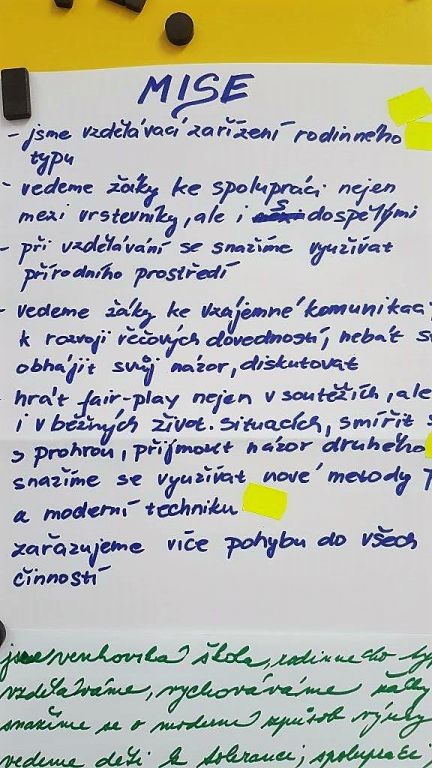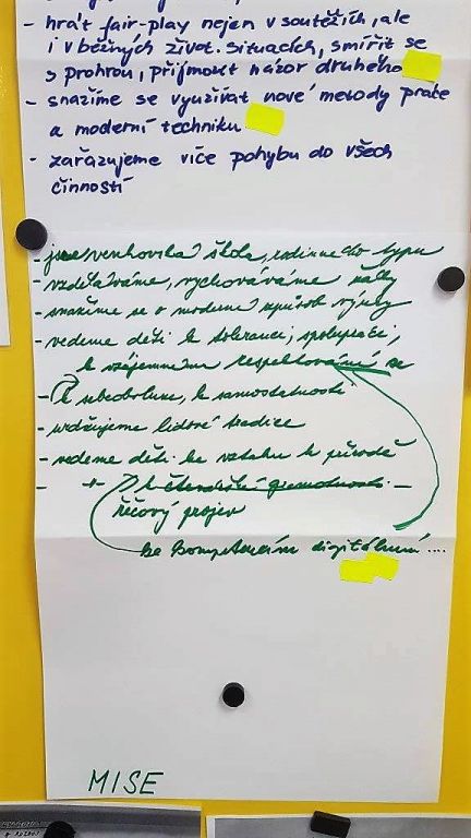 Od srpna roku 2018 je naše škola zapojena do projektu „Strategický rozvoj a plánovaní“ (SRP), realizovaného Národním institutem pro další vzdělávání ve spolupráci s Českou školní inspekcí. Cílem tohoto projektu je v jeho první fázi stanovení mise a vize školy a akčního plánu rozvoje školy, který vychází ze SWOT analýzy (stanovení silných a slabých stránek školy, příležitostí a hrozeb) vedením školy a všemi pedagogickými pracovníky. Dotazníkovým šetřením byla vyhodnocena rovněž kultura školy, současný stav a očekávání v budoucnosti. Společně vytvořený dlouhodobý plán rozvoje školy do roku 2024 bude v další etapě postupně evaluován. Věříme, že se nám podaří stanovené cíle s podporou zřizovatele naplnit.